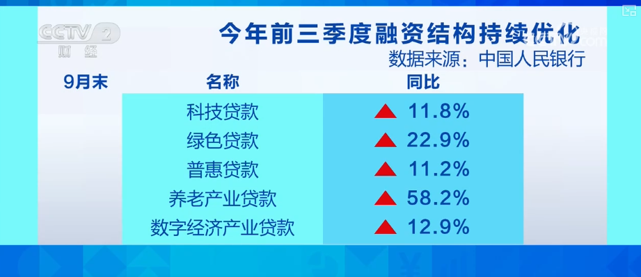 报告指出,2025年前三季度,金融总量合理增长,社会融资成本处于低位,融资结构持续优化。9月末,支持做好金融“五篇大文章”的结构性货币政策工具余额为3.9万亿元,科技贷款、绿色贷款、普惠贷款、养老产业贷款和数字经济产业贷款分别同比增长11.8%、22.9%、11.2%、58.2%和12.9%。