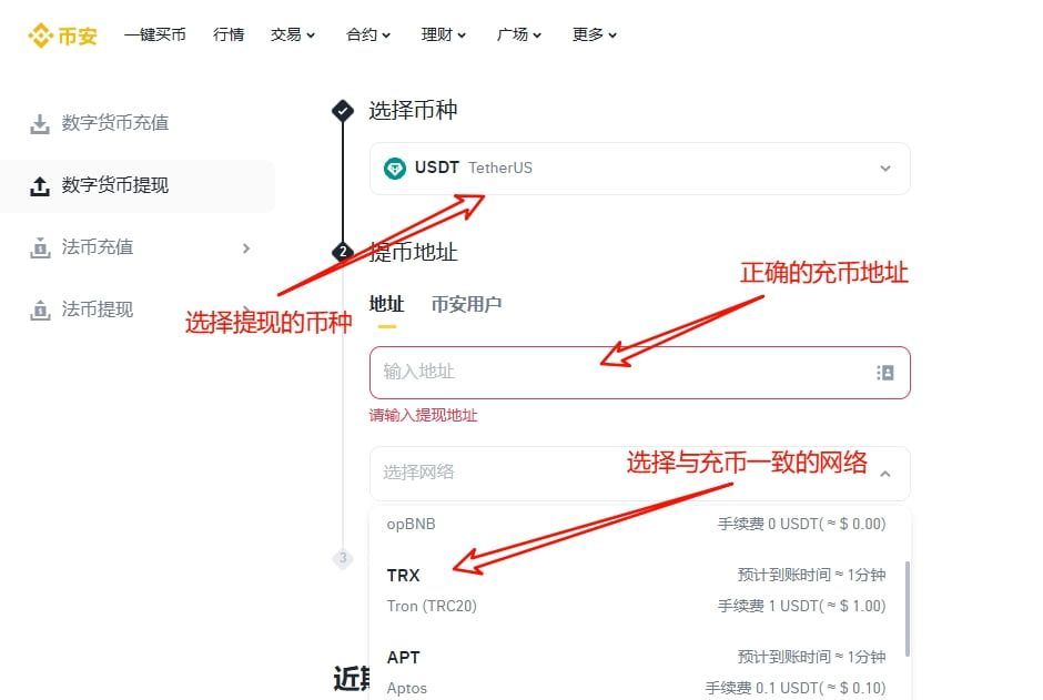 确保提币或充币填写正确的地址。充值网络和提现网络必须一致(非常重要)。在第一次进行充值和提现之前,建议先进行少量资产的测试转账,以防意外错误发生。需要注意:充币提币的原理和操作非常简单!但是一定要注意以上三点,否则可能导致您的资产丢失!