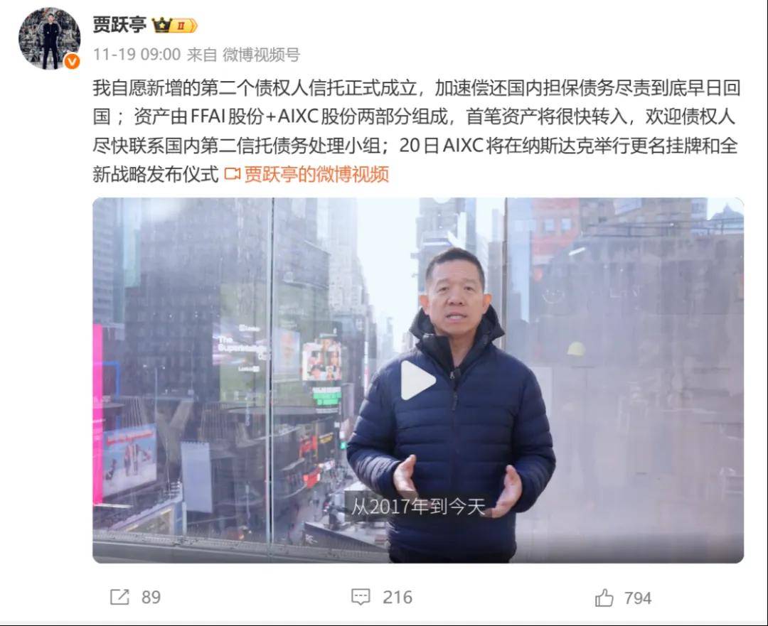 贾跃亭最近又有很多大动作,11月19日,他在微博上的视频中说道,从2017年开始,在美国已经3000多个日日夜夜,无时无刻不想着尽快还债回家。