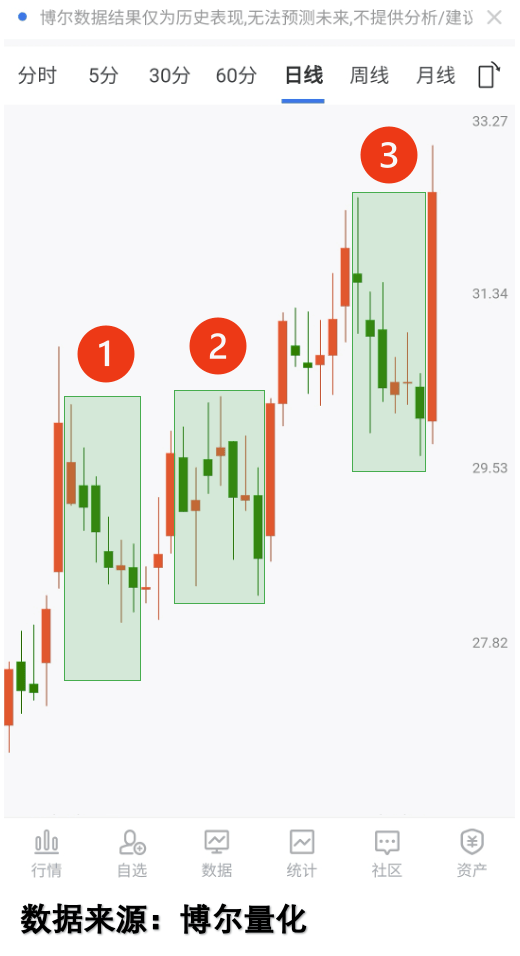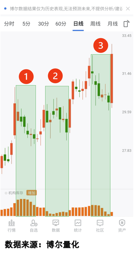 下面这个案例很能说明问题。某只股票在上涨过程中经历了三次明显调整(见下图)。按照传统技术分析,第三次调整已经接近破位,多数散户会选择离场。但量化数据却告诉我们完全不同的故事。