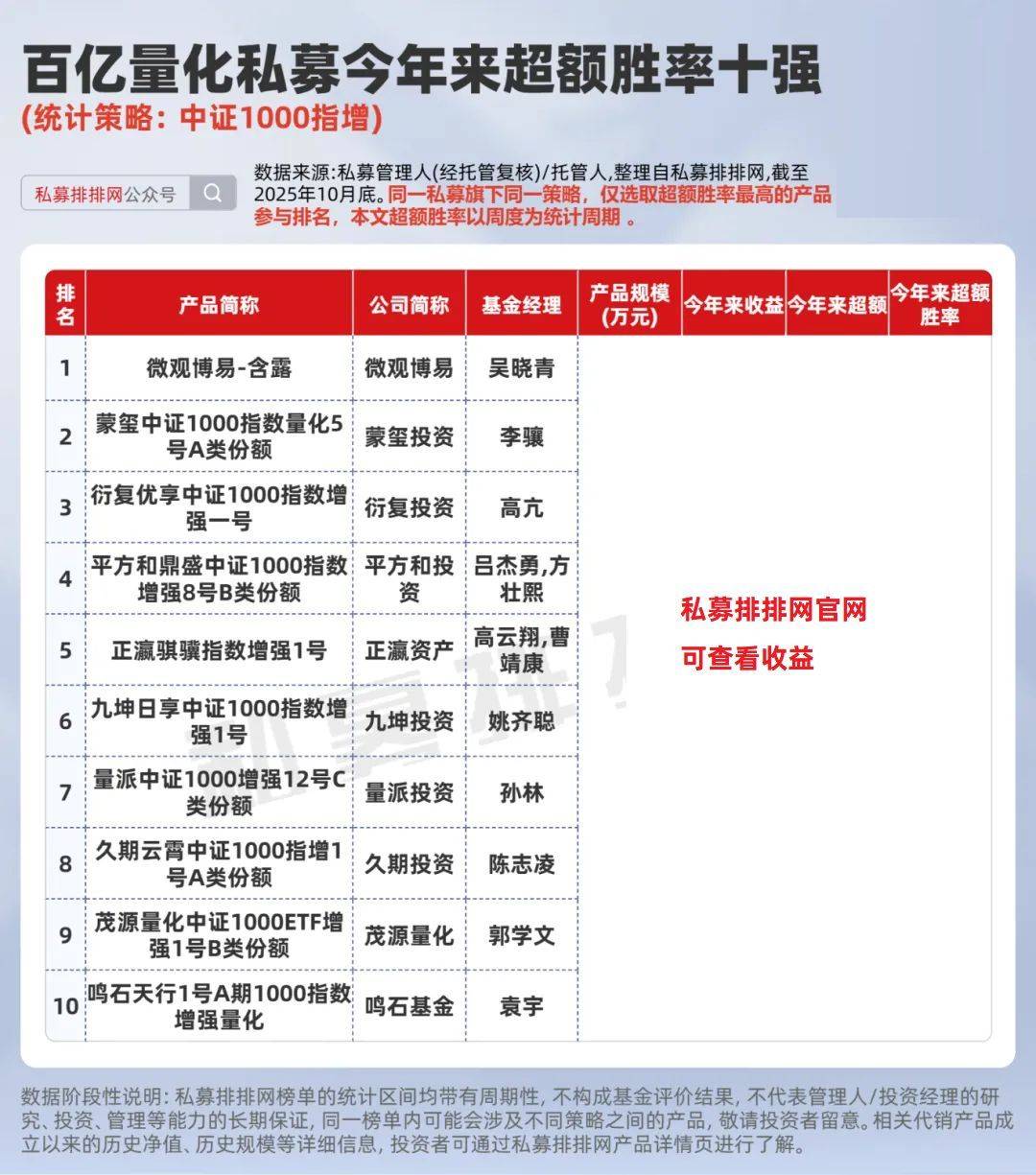 非小号app“四大量化天王”齐上榜!百亿量化超额胜率榜